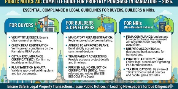 Public Notice Ad for Property Purchase in Bangalore: The Legal Step That Protects Your Biggest Investment By Rohan Singh, Media Director, Public Notice Ads Serving Bangalore’s real estate corridor since 2014 · Website: public-noticeads.in · Last updated: March 16, 2026…