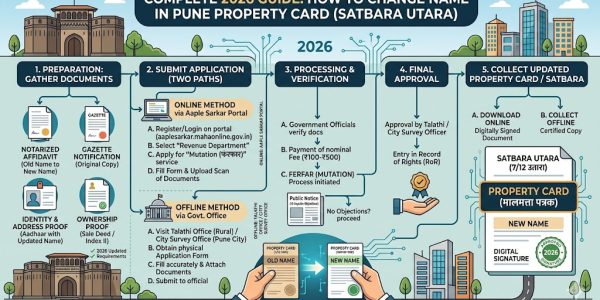 Pune’s property card — officially called Satbara Utara (7/12 Extract) — records land ownership via Maharashtra’s Bhulekh portal. Property tax name updates are handled separately through PMC (Pune Municipal Corporation) or PCMC (Pimpri-Chinchwad Municipal Corporation) depending on your property’s jurisdiction….