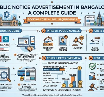 Circulation quality comes third. From the approved newspapers in your area, pick the ones that are read the most by the local community. For a property notice in Koramangala, choose a newspaper that reaches neighbors, potential claimants, and local authorities. A well-read paper makes sure your notice is seen by the right people and carries the weight it needs.