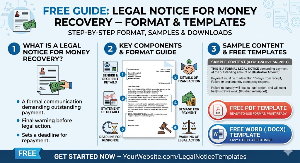 Here is a complete, step-by-step guide on how to write a legal notice for recovery of money from scratch — plus a ready-to-use format of legal notice for recovery of money that you can adapt immediately.