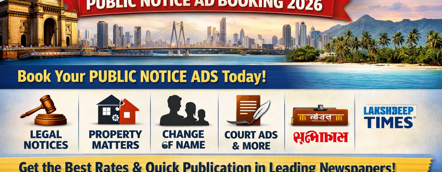 If you need to publish a public notice advertisement in Mumbai Lakshdeep — for a name change, lost document, property matter, or any other legal requirement — you are looking at one of the most cost-effective public notice options in the city. Mumbai Lakshdeep public notice ads are widely accepted by courts and legal authorities, with competitive rates and a booking process that is simpler than most people expect.