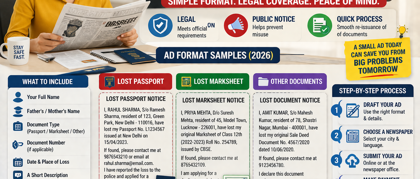 I have assisted clients to place hundreds of lost document advertisements in Tamil Nadu, Kerala and Karnataka. The single error I notice every time? People write the ad after booking the space. At that point, it is too late to fix the word count or restructure the content. Begin with the format. Book later. Always.