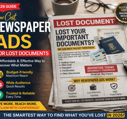 A newspaper publication establishes a record of publicity that has a date of verification. Newspaper clippings are taken as proof of publicity in courts, government offices, and banks. None of the digital platforms, a Facebook post, a Google advertisement, a WhatsApp broadcast, builds that type of legal history. In the case of lost notices and legal ads, there is no online alternative.