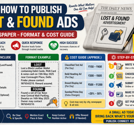 The initial question that everybody asks is how much this will cost? The straight truth is - it all depends on three things you have not yet considered: the city you are in, the paper you have chosen, and the fact that you have inadvertently booked a display advertisement when a classified text announcement would have accomplished the same task at a quarter the cost. A misplaced advert in the newspaper about a passport can range between 320 to 3,200 on the same 35-word text. It is no exaggeration. I have seen individuals spend 2800 on a notice which would have been placed in one of the local Tamil papers at 480, and the passport office accepted both without doubt. This guide is divided into costs per city, type of document and paper. It also discusses which papers actually are preferred by banks and courts, when the cheaper ones are okay, and when they are not.
