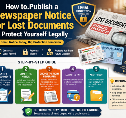 Purchasing real estate is a major decision in life. Whether you are buying a resale flat in a Mumbai housing society, agricultural land in Maharashtra, a commercial shop, or investing as an NRI, one important step to protect yourself legally is publishing a property purchase public notice in a newspaper before finalising the deal.