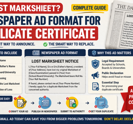 - Loss of Documents: If you lose papers like a share certificate or sale deed, publishing a notice creates a legal record of the loss.